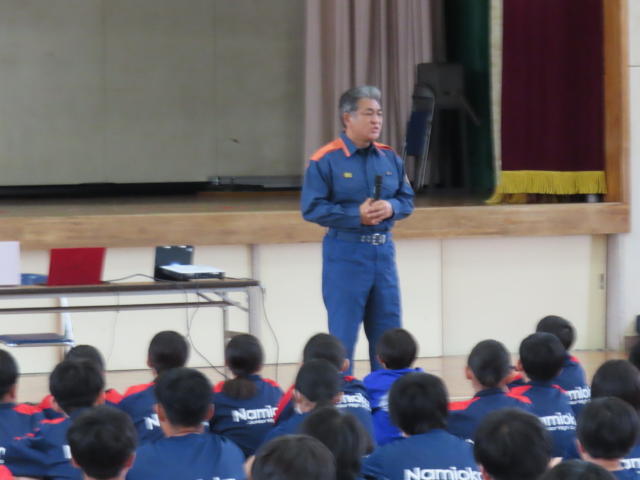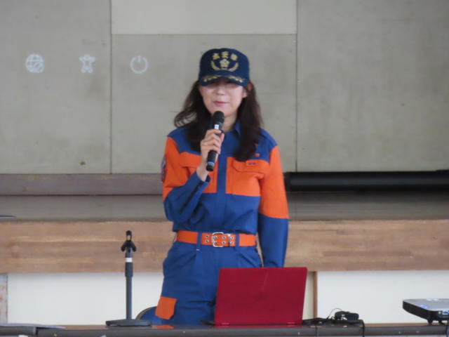 令和7年度防災ジュニアハイスクール 9月19日(金) 波岡中学校において市消防署による中学生を対象とした防災ジュニアハイスクールが 行われた。 木更津消防署からの挨拶に始まり、 1 救急、消防の内容にについて説明 2 消防団の役割について説明 3 危機管理研究所代表 国崎信江氏による 講和がありFMB、マイタイムラインの役割説明があった。 4 波岡公民館地区まちづくり協議会会長 影山氏による協議会の役割活動について説明があった。 5 八幡台地区まちづくり協議会からも説明があった。 6 その後生徒による実践訓練が行われた。 AED使用・ロープワーク・消火器使用訓練等