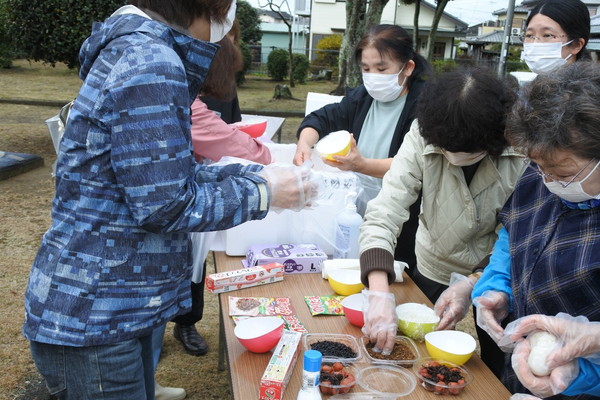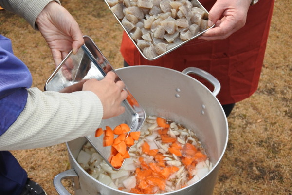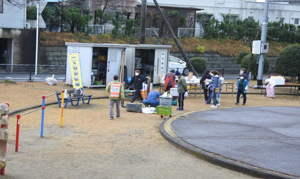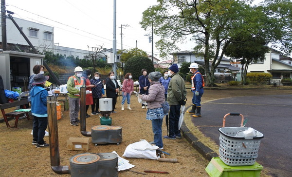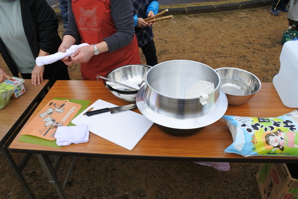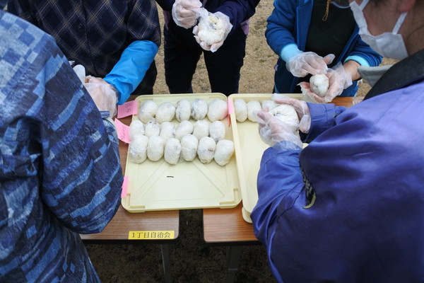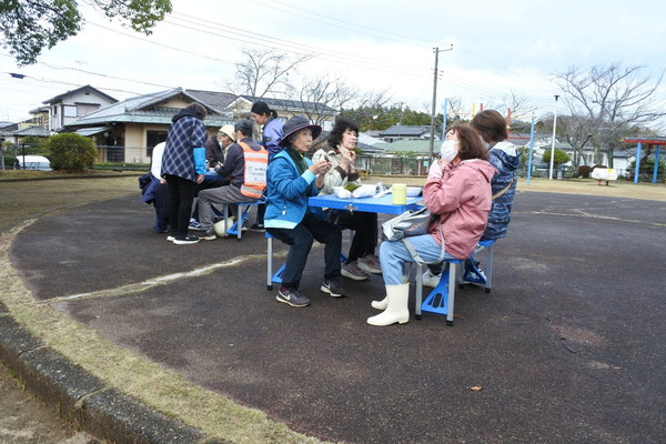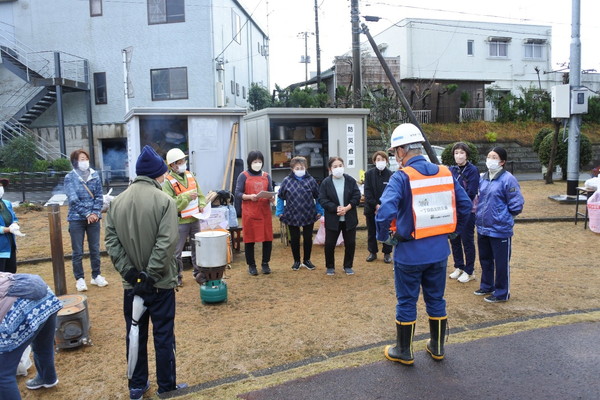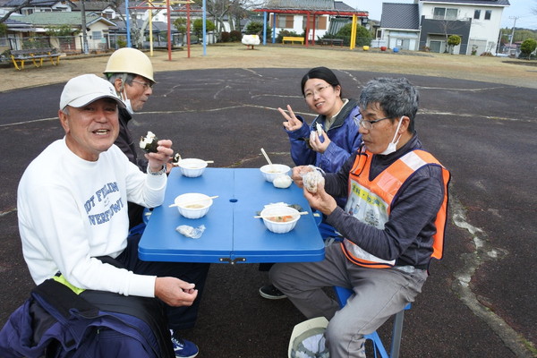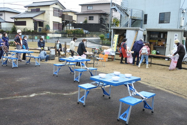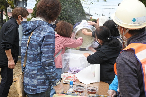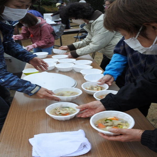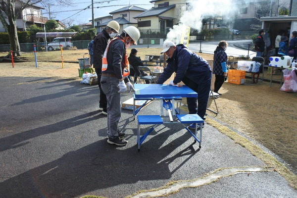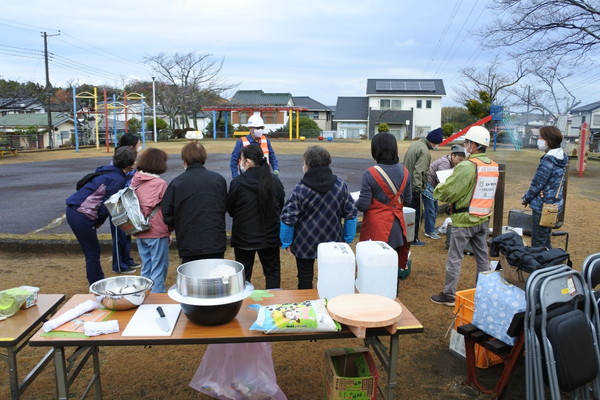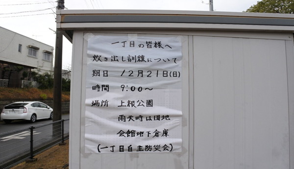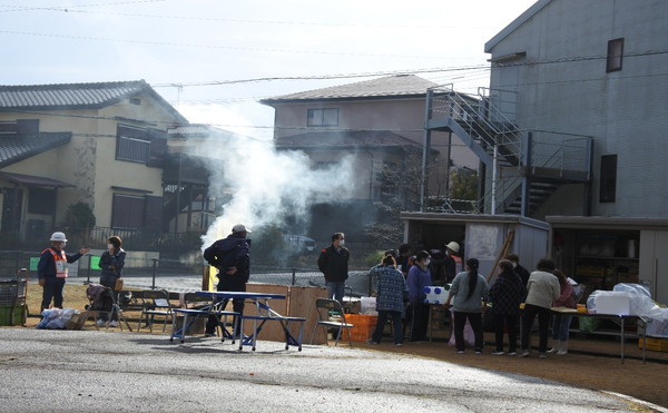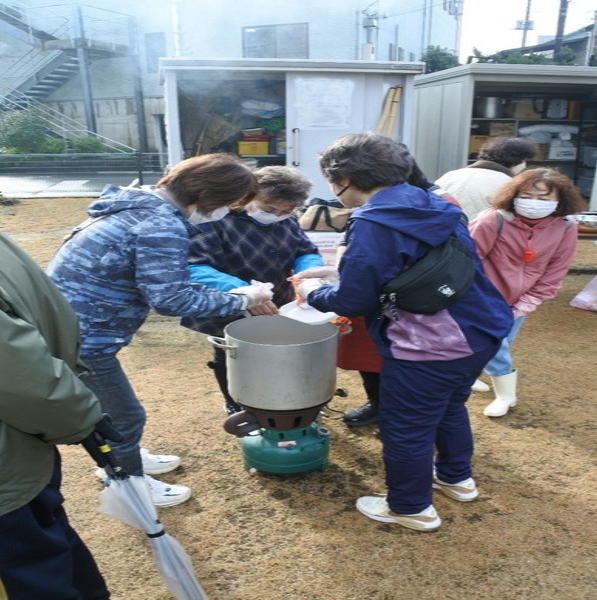 12月21日(日)0845〜1200に上根公園にて炊き出し訓練を行いました。 雨の降る予報でしたが当日は朝から雨が上がり時折青空が除く絶好の天気になり、 自主防災会員及び街区委員、自治会員延べ30人が協力して最高の炊き出し訓練となりました。 ![]() ![]() ![]() 本日の段取りについて説明 ![]() ![]() ![]() ![]() 豚汁食材の裁断 ![]() ![]() 美味しそうな具材が入ります ![]() 水かげんは良いかな ![]() ![]() もうすぐ煮えるかな〜 ![]() 灯油バーナーでやってみよう ![]() ![]() ごはんが炊けて発泡にビニール掛けた入れ物に移す ![]() ![]() 皆でおにぎり作成中 ![]() 大部出来てきたね ![]() テーブル準備中 ![]() 豚汁出来た〜 ![]() 配食配膳だ〜 ![]() 豚汁美味そう ![]() ![]() ![]() 今日の献立 ![]() ![]() 美味しいね〜 ![]() ![]() 後片付け終わって記念撮影 皆さん協力ありがとうございました